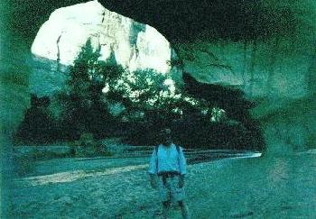 Skyline Arch - This can best be seen from the top of a sandy side-trail, at the confluence of Coyote Gulch with the Escalante River. It is marked on the maps as Stevens Arch; however, I usually prefer the older, more descriptive names. |