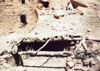 The Ruin with No Name - Grand Gulch is frankly choked with Anasazi ruins; it sometimes seems as though every crack and crevice in the north wall of the canyon displays some evidence of prior occupation. While the "Trails Illustrated" map of Grand Gulch indicates a large number of the more substantial sites, many others, such as the one seen here, are unmarked and unnamed. |