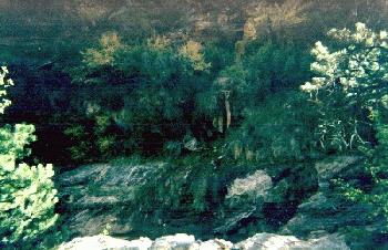 Across the stream from the ledge where we camped is a spring, marked by hanging gardens of moss and maidenhair fern. |