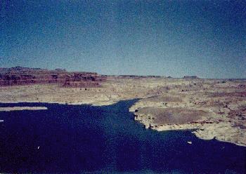 Lake Powell - When Glen Canyon was dammed and flooded, a large lake was formed, located to the northeast of Grand Canyon. This photo was taken at Hite's Crossing, at the north end of the lake. |