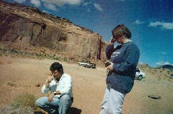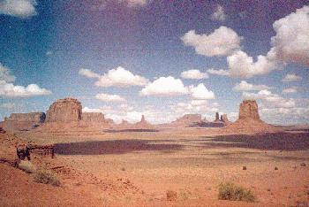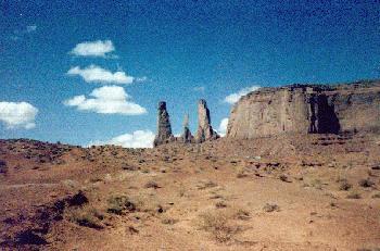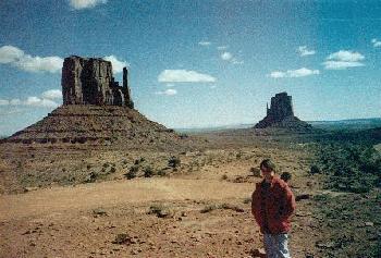 The Mittens - Jenn came out to visit me and Louise in 1994, and accompanied us on a short trip through some of the parks on and near the Navajo reservation. That's her in front of one of Monument Valley's most filmed attractions: the Mittens Buttes. |