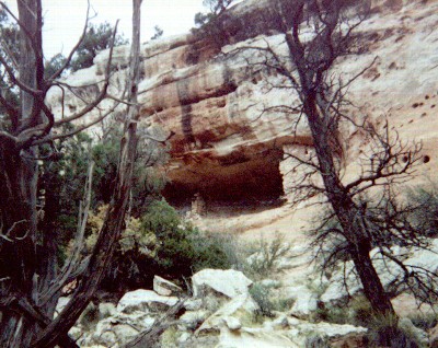 Some of the ruins in Sand Canyon, like this one, are located at a distance from the trail, and are not accessible. It's a good idea to bring a pair of binoculars along, to help you make out the features of the nearer sites, and to identify sites further away. |