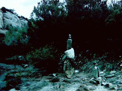 Some of the hikers and trail maintainers get a bit carried away with cairn-building, from time to time. This one, set within the stream bed, is roughly 6 feet tall. |